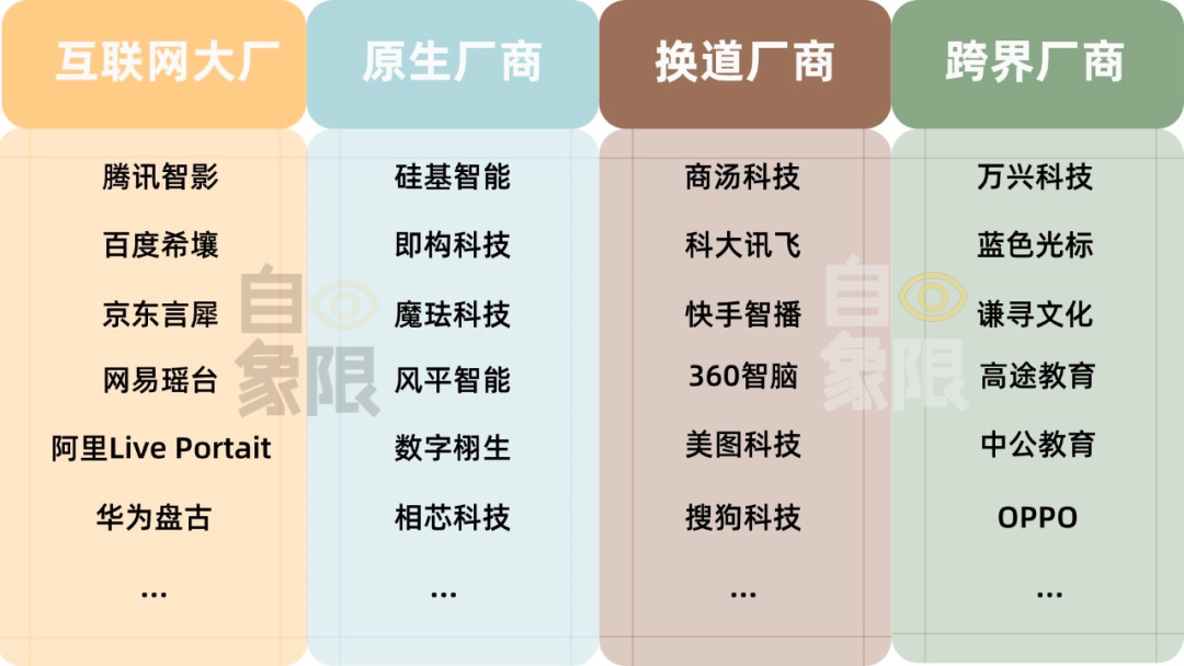 如同秃鹰盯上腐肉,嗅到万亿商机的各方势力,都欲分一杯羹,这也直接导致了目前的虚拟人玩家格局陷入了“混战”状态。