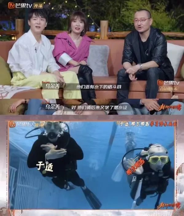 从内容上看,综艺中放出的训练片段,几乎是他们从一张白纸到最终“成为”角色的过程,前后的对比有很大反差,既做到了和影视内容结合紧密,又做到了观看端的“养成感”,内容一点也不算干瘪。可以举的例子包括那尔那茜和其他人不同要练邓婵玉的双刀,于适等人为了后续的水下格斗戏考了潜水证,等等。