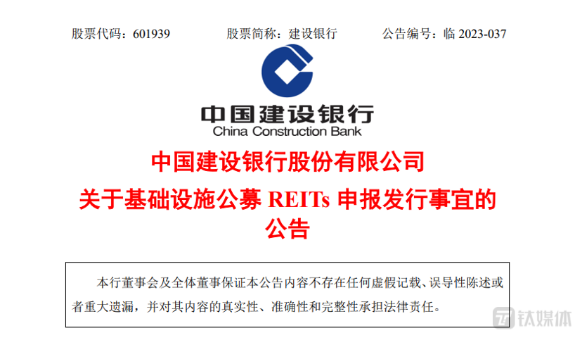 据Wind数据统计,目前上市银行中,仅建设银行有公告在申报公募REITs。