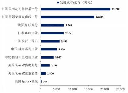其中最为关键的我国火箭发射成本控制水平相较美国仍有较大差距,降本路径主要受限于低成本推进剂、回收复用和“一箭多星”等技术难点。此前马斯克就曾透露,星链卫星制造成本约在50万美元/颗,而国内低轨通信卫星的平均造价约在3000万元;再看卫星发射成本,Space X使用猎鹰火箭的单星发射成本约为50万美元,远低于国内发射成本。