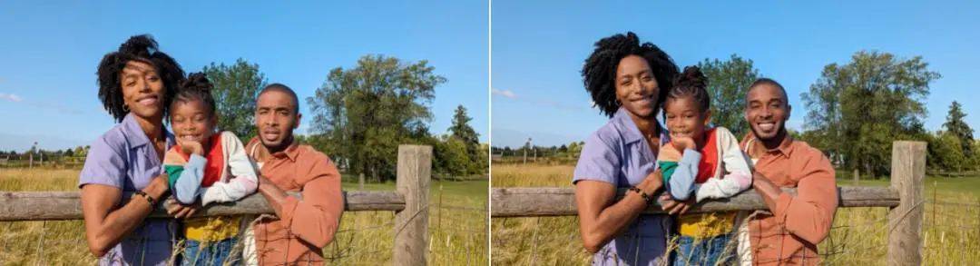 通过生成式AI,Google Photos 中的Magic Editor(魔法编辑器) 可以利用已经拍摄的照片,手动从其他照片中选择另一个表情,生成一张新的照片,且可以保证“每个人都睁着眼睛”。
