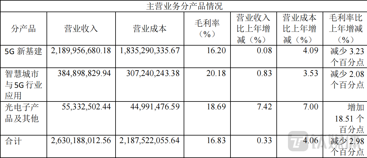 资料显示,公司主要为客户提供5G新基建、智慧城市与5G行业应用服务,以及光电子器件的生产和销售。