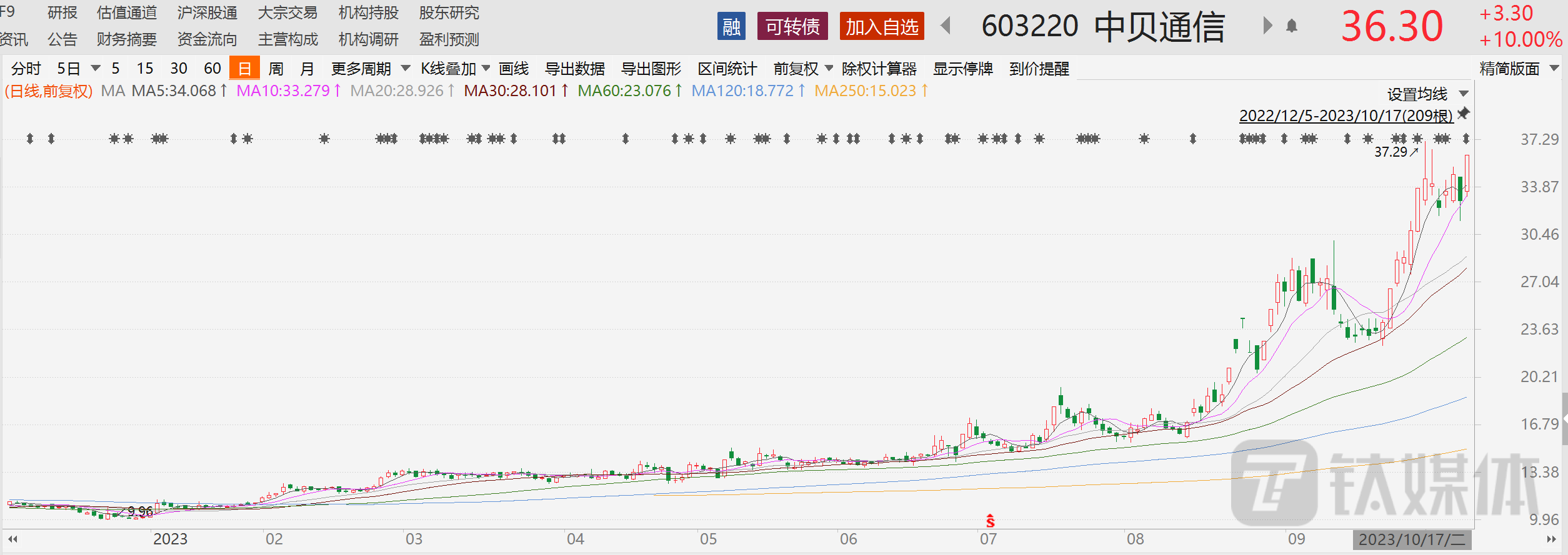 对此,公司称此举可以提高资本实力,扩大公司业务规模、提升综合竞争实力。或受上述消息影响,公司二级市场股票表现亮眼。今日公司股票小幅高开后快速涨停,截至10月17日收盘,公司股价报收36.3元,上涨10%,总市值122亿元。