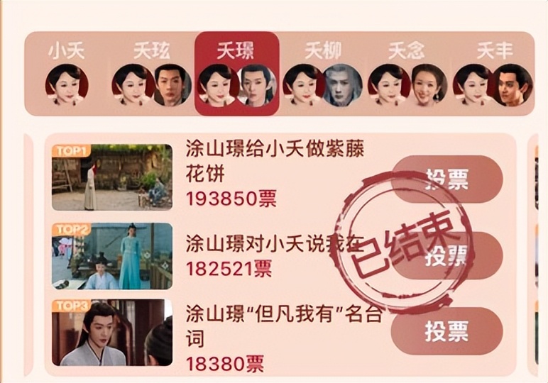 比如作为官配的小夭和涂山璟,投票前三名的名场面分别为涂山璟给小夭做紫藤花饼、涂山璟对小夭说我在、涂山璟“但凡我有”名台词,纷纷斩获了超18万的票数。除此之外,小夭与清水镇家人告别、涂相柳教小夭射箭等获得了分组冠军,有望在现场演绎。