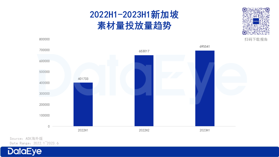 1. 2022H1、H2、2023H1新加坡投放量趋势(去重素材量)