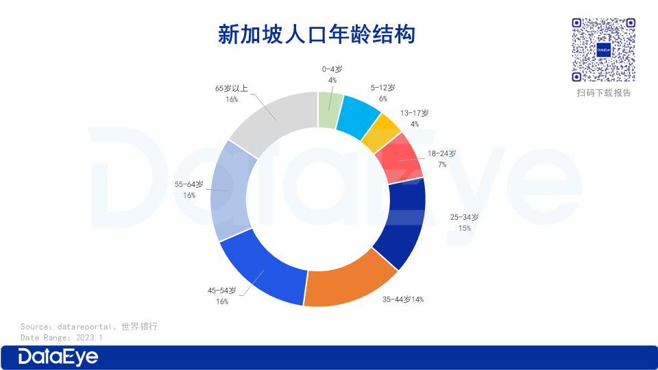 新加坡平均年龄达42.7岁,在东南亚国家中,新加坡高年龄段人群相对较多。2022年新加坡65岁及以上人口占比为15.6%,已经步入中度老龄化社会(按照联合国定义,当一个国家或地区65岁及以上人口数量占总人口比例超过14%,即进入中度老龄化)。