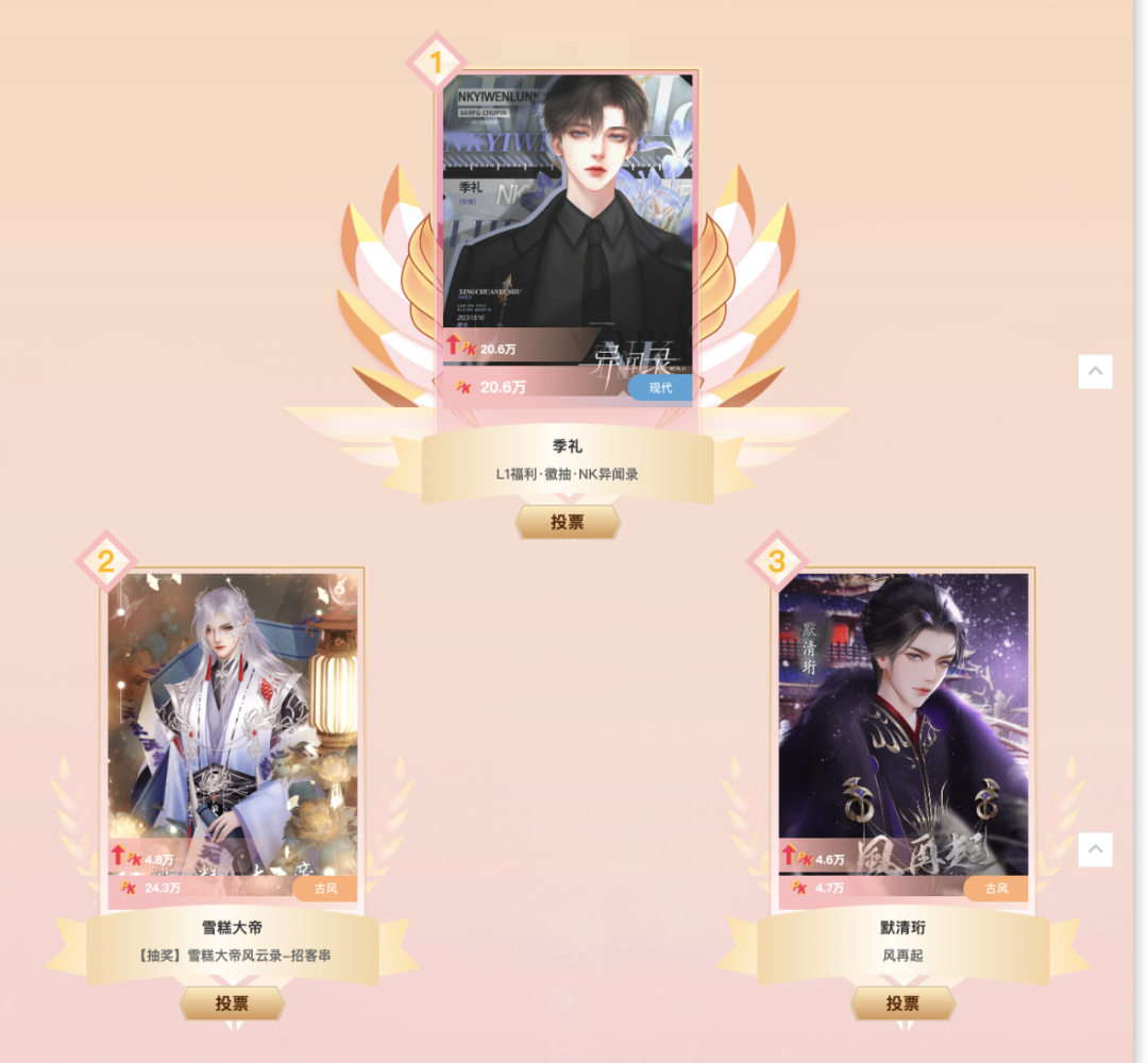 如果说随着虚拟偶像的兴起,我们已经能接受人们为虚拟偶像付费的行为,那么现在有一批女性用户为故事角色投票打榜的情况,是否会让你意外?