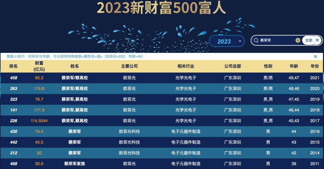 也就是说,蔡荣军并非欧菲光的创始人。后来,欧菲光邀请蔡荣军、蔡高校兄弟担任总经理和副总经理,为公司研发助力。