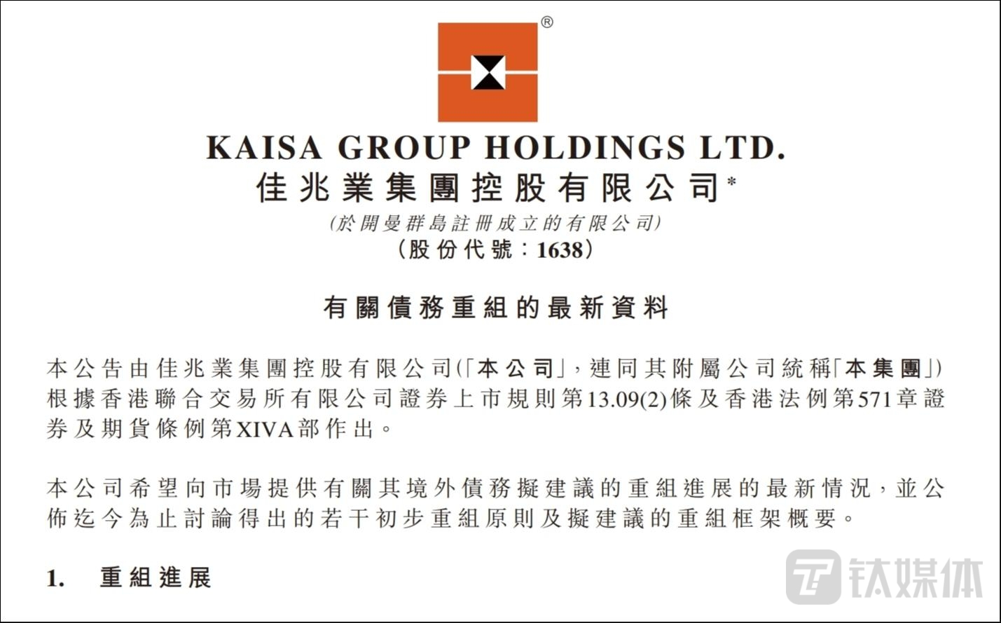 10月17日晚间,佳兆业集团(01638.HK,以下简称“佳兆业”)发布了公司境外债务重组的最新进展。