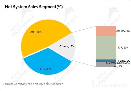 - 2、各项业务情况:ArF 是主要推动力。系统销售收入仍是公司最主要的收入来源,占据公司收入的 8 成。本季度公司收入的同比增长,主要来自于下游客户对 ArF 拉货的增加。尤其是,近两季度 ArFi 的收入占比已经达到 4 成。