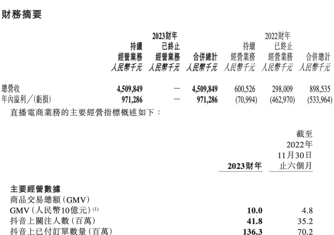 从东方甄选的全年财报中也能看出,东方甄选报告期内(2022年6月至2023年5月)实现总营收45亿元,净利润9.71亿元。其中,直播带货营收39亿元,自营产品的总营收超过26亿元。