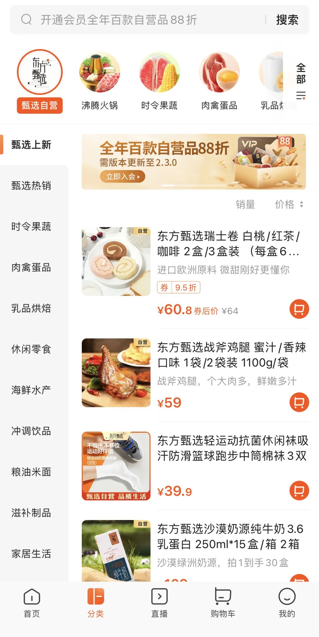 首先,前文提到,自营品类数量上与山姆尚有巨大差距,因此同样高昂的会员费却并没有办法给用户提供同样多元的购物选择。这或许也是为何,在昨日的直播中,俞敏洪提出“2024年底,要求自营品种类达到400-500种”的目标,只不过以东方甄选目前的品类更新速度,还远远达不到俞敏洪的要求。