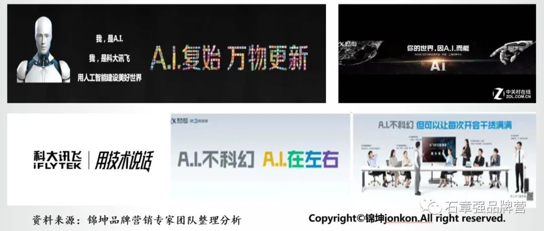 2019 年,科大讯飞开始从人工智能 1.0 阶段迈入人工智能 2.0 阶段,其自主研发一些 AI 产品已经规模化应用到各种商业场景中。科大讯飞以一句“你的世界,因 A.I. 而能”配合品牌宣传片,将科大讯飞认知的AI及价值观进行传播,做了很好的市场传播。