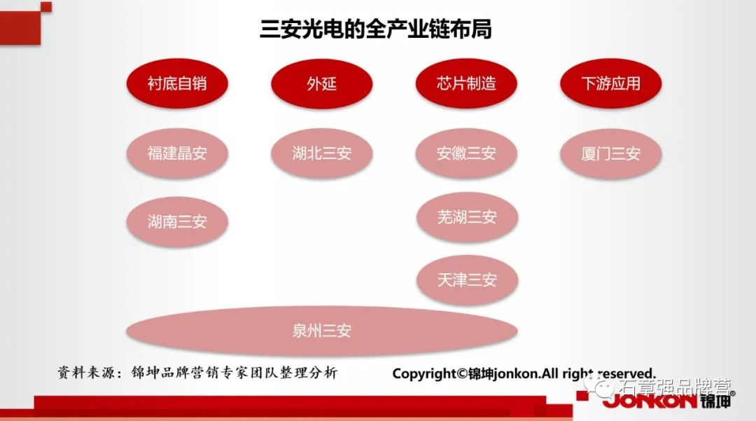 三安光电最大的特点,在于其产业链的上下游延展。三安光电不仅在光电子核心业务上进行深耕,还在积极拓展产业链,进行上下游产业链的布局,建立完善稳定的上游供应体系,并严控下游产品质量。2014年,三安光电通过设立厦门三安集成全资子公司正式发力化合物半导体市场,又成为该行业的领军者。其抢先布局5G、物联网,填补了我国二代、三代化合物半导体的空白。现在的三安光电,已经成为国内唯一有能力、有实力在半导体全产业链布局的庞然大物。