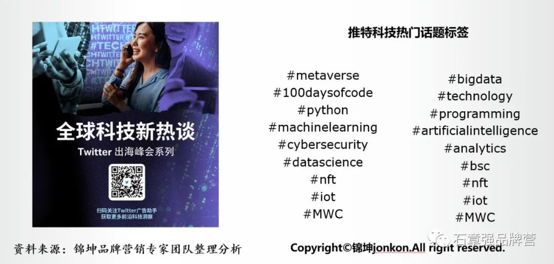 中国科技企业正是在此时代之下开启了集体出海的新征程。打开推特就会发现,越来越多的中国科技品牌已经在海外平台非常活跃,如小米、TCL等,都在推特上积极与海外用户互动。在这一大势下,推特也推出了相应的活动,如“#TechTwitter全球科技新热谈”直播活动,与营销专家共同探讨中国科技品牌的出海之路。疫情之后的经济复苏,能够帮助科技品牌探索更多品牌打造的新边界。