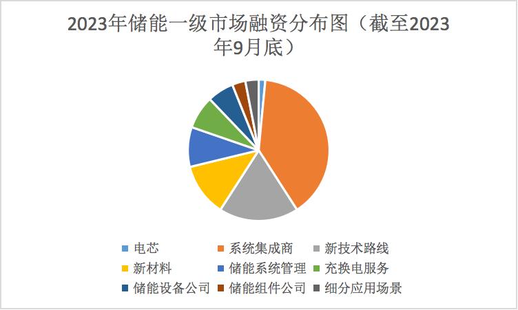 《中国企业家》对2023年储能一级市场投融资的不完全统计显示,近百起融资案例涉及66家企业,其中除了海辰储能一家电芯公司,主业为储能系统集成的企业数量最多,为26家;新技术路线——钠电、液流等领域的有12家;另外新材料领域的公司有8家,其余的十几家公司散布在储能周边——储能系统管理有6家,主营充换电服务的有5家,设备公司有4家,组件有2家,还有2家公司面向储能在细分场景的应用。