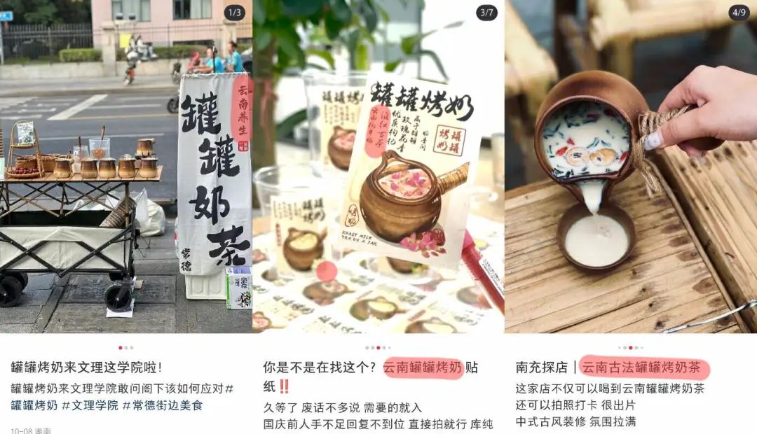 在秋风起、自然界由暖转寒的季节,罐罐烤奶给消费者带来温暖的、有仪式感的、有几分精致或者说文化内涵的一杯饮品。在热奶的3分钟里,店家给你展示原料、制作过程,告诉你这个东西的来历,来自云南,最后配个也有中式元素的纸杯子。