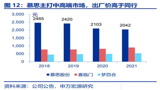 节点财经认为;“慕思床垫之所以卖的贵,主要在于其‘中高端’的品牌定位”。数据显示由于定位高端,慕思的出厂价与毛利率要明显高于同行。