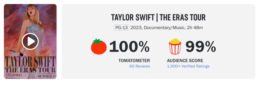 “芭比海默”后,北美电影市场又迎来一部现象级大片,《泰勒·斯威夫特时代巡回演唱会》(以下简称《时代巡演》)。