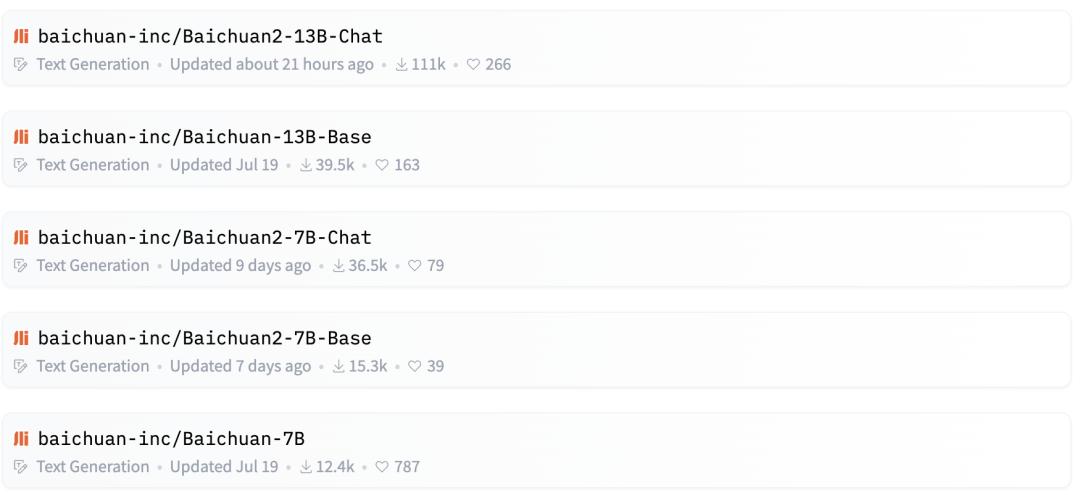 光锥智能发现,百川智能系列模型在Hugging Face开源社区的最高下载量有11万多,在中外开源大模型中仍具有竞争力。