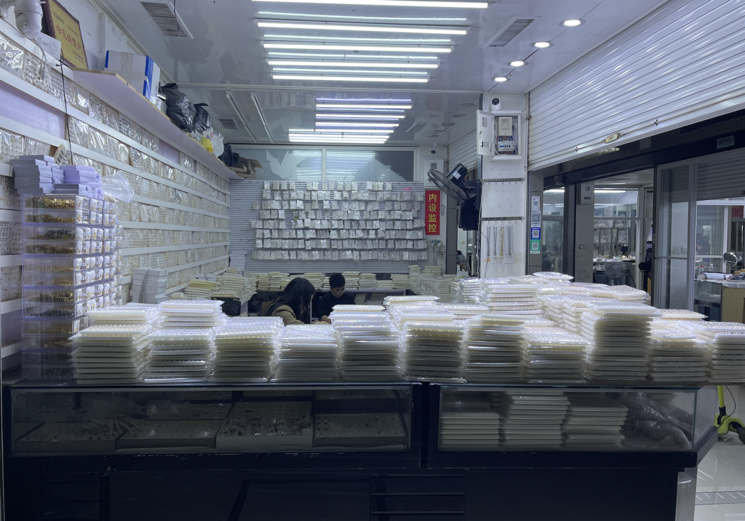 之后我又走进了多家珍珠档口,情况也大体类似,散客生意并不是他们的重点。相反,一些拿着小电筒、放大镜、计算器的代购们,则成为与档口老板交谈密切的群体。