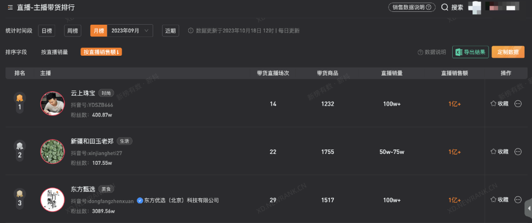 据新抖数据,7-9月连续3个月内,抖音主播带货总榜的前两名都是珠宝玉石类主播,直播销售额均超过1亿元,领先于东方甄选、交个朋友、疯狂小杨哥等头部主播直播间。