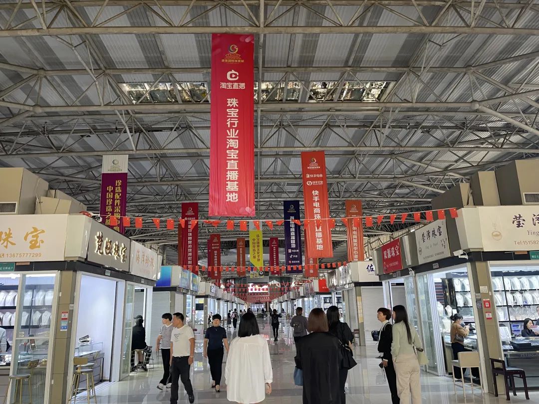 直播,是华东国际珠宝城的关键词之一。温润饱满的珍珠天生就适合展示在镜头前,再经过直播间专业灯光的折射,光泽度能够轻易俘获屏幕另一端消费者的芳心。