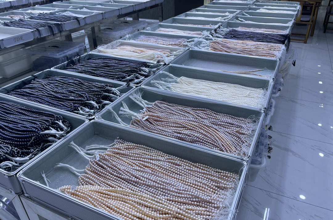 骆润泽经营档口零售的珍珠成品