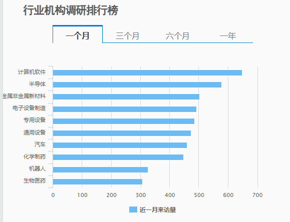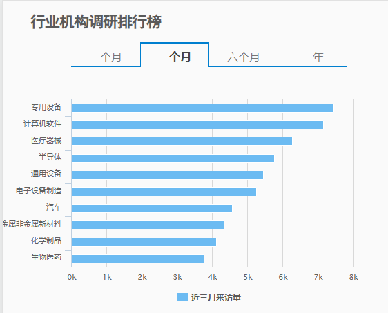 从近一个月、三个月行业机构调研排行榜来看,TMT、新材料、汽车、医药医疗等热门行业榜上有名。
