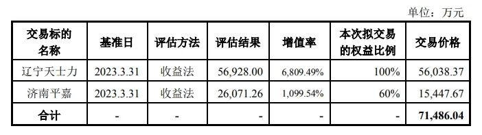 据9月25日漱玉平民发布的《重大资产购买报告书(草案)》(下称“《报告书》”),本次收购交易选取收益法评估结果作为最终评估结果,辽宁天士力全部股东权益评估价值为56928.00万元,评估增值率为6809.49%;济南平嘉全部股东权益评估价值为26071.26万元,评估增值率为1099.54%。