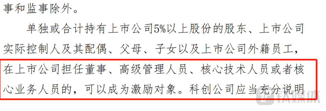 不过,根据相关规定,单独或合计持有上市公司5%以上股份的股东或实际控制人及其配偶、父母、子女,需要在上市公司担任董事、高级管理人员、核心技术人员或者核心业务人员才可以成为激励对象。