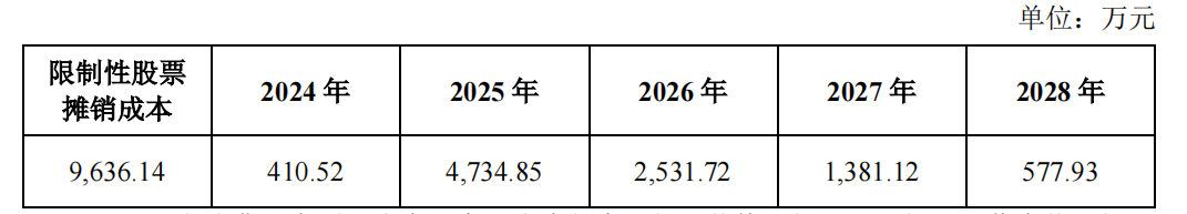 此外,在本次股票激励中,公司预计首次授予的权益费用总额为9636.14万元,该等费用总额作为本激励计划的激励成本将在本激励计划的实施过程中按照归属比例进行分期确认,且在经营性损益列支。公告显示,据会计准则的规定,具体金额应以“实际授予日”计算的股份公允价值为准,假设2024年11月授予,则2024年—2028年限制性股票成本摊销情况如下。可见,公司若将净利润设置为业绩考核指标,还需要面对股票激励成本。