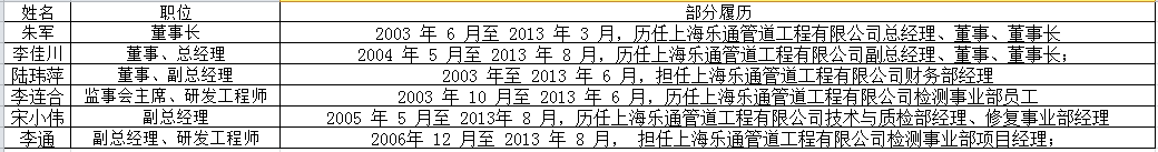 上述6位均是于2013年从乐通管道离职,特别是除了朱军之外,其余人员从乐通管道离职之后入职誉帆科技。