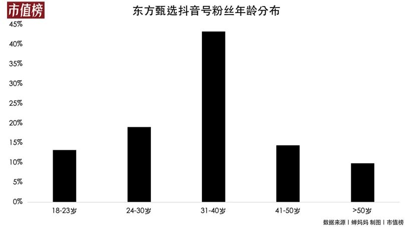 蝉妈妈数据显示,东方甄选现有用户群体是以80、90后女性为主,主要分布在一二线城市,比如东方甄选抖音号,共有3090万粉丝,31-40岁用户占比为43.3%,女性用户占比75%,用户最多城市分别是北京、西安、上海、深圳、广州、成都等一二线城市。