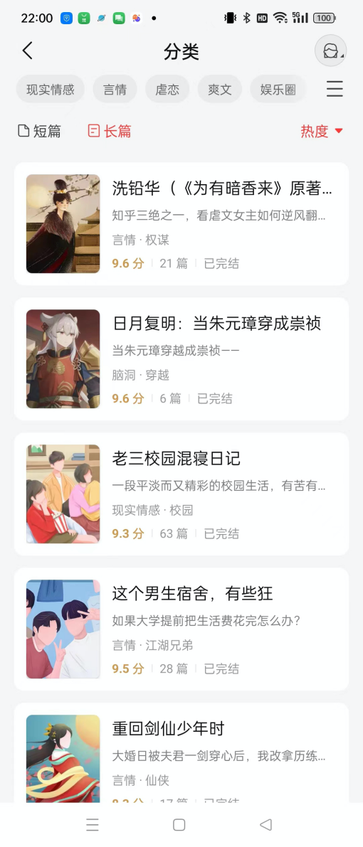 而“盐言故事”APP推出后,正式版本与知乎账号打通,共享创作者服务体系,提供专门的故事内容阅读服务。也就是说,如今要登陆知乎观看《洗铅华》完整版,需要下载知乎盐言故事APP进行阅读。在盐言故事APP界面中,可以看到平台现如今以虐文、重生文、复仇文为主,暗恋、白月光、高岭之花、追妻火葬场这些熟悉的女频题材和字眼占据主要版面。这跟人们印象中马伯庸《长安十二时辰》时期的知乎文学的高知、强文学和强历史性截然不同。