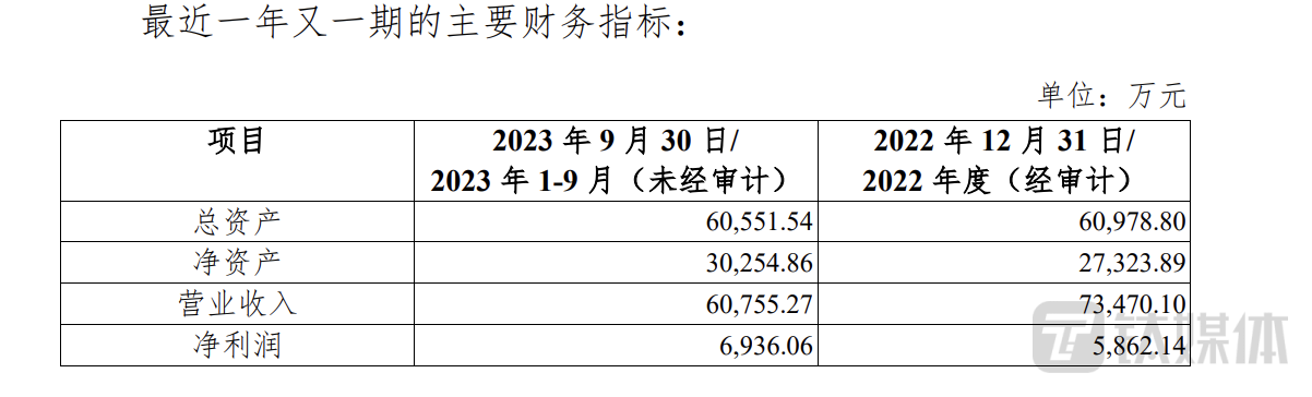 具体来看,2023年1-9月,标的公司的营业收入为6.08亿元,净利润为6936.06万元。截至2023年9月30日,其净资产为3.03亿元。在上述数据的基础上,双方确定标的公司整体股权价值为6.98亿元,增值率为130.71%。