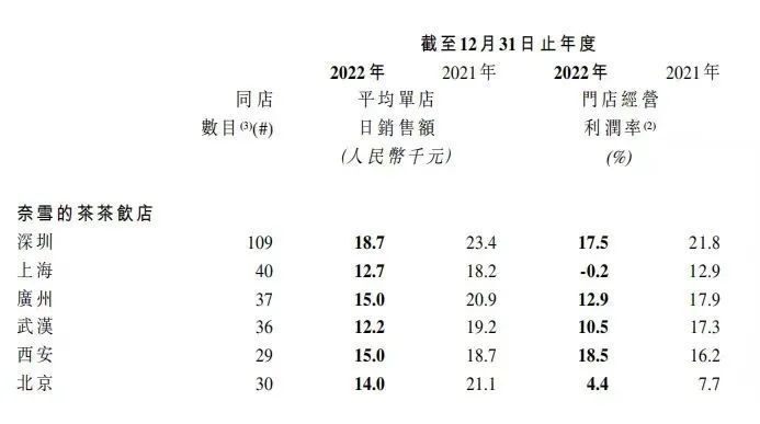 虽然官方预期不错,但结合奈雪的茶财报来看,其2021年、2022年每笔订单平均销售额分别为41.6元、34.3元,每间门店平均每日订单量分别为416.7单、348.2单;2021年、2022年门店经营利润为5.9亿元、4.7亿元,门店经营利润率为20.6%、11.8%。