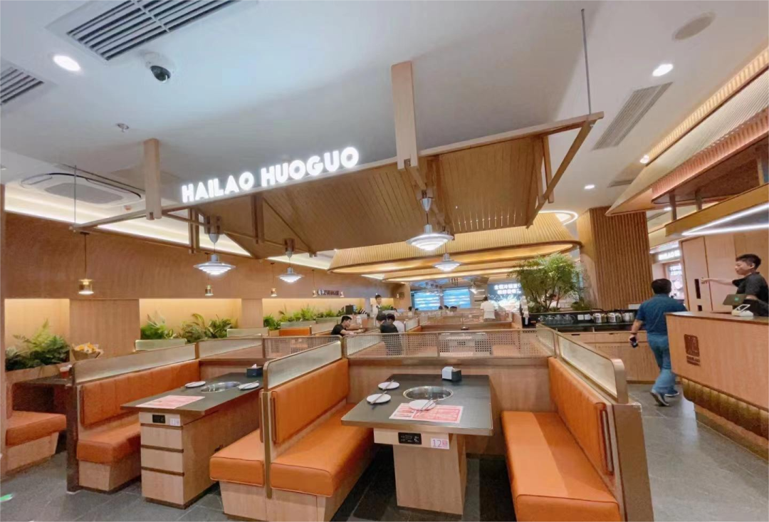 9月26日,一家名为“嗨捞火锅”的火锅店在北京龙湖北苑天街B馆4楼悄然开业,门店装潢处处体现着“海底捞”的气息:入口上方悬挂着“嗨捞火锅”招牌,店内整体设计主打暖色调,橘黄色的椅子搭配黑色岩板桌面,且多处采用“HAILAO HUOGUO”的拼音名,同时凸显了slogan“每天都是小欢聚”。