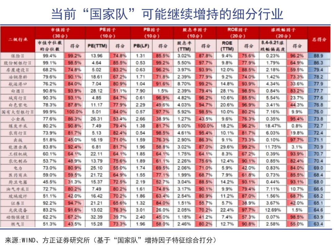 按照经验,“国家队”增持往往会倾向于金融(保险、银行、证券)和资源(煤炭、油气开采)行业,这也与上两周发出增持回购消息的央企国企所在行业分布相吻合。