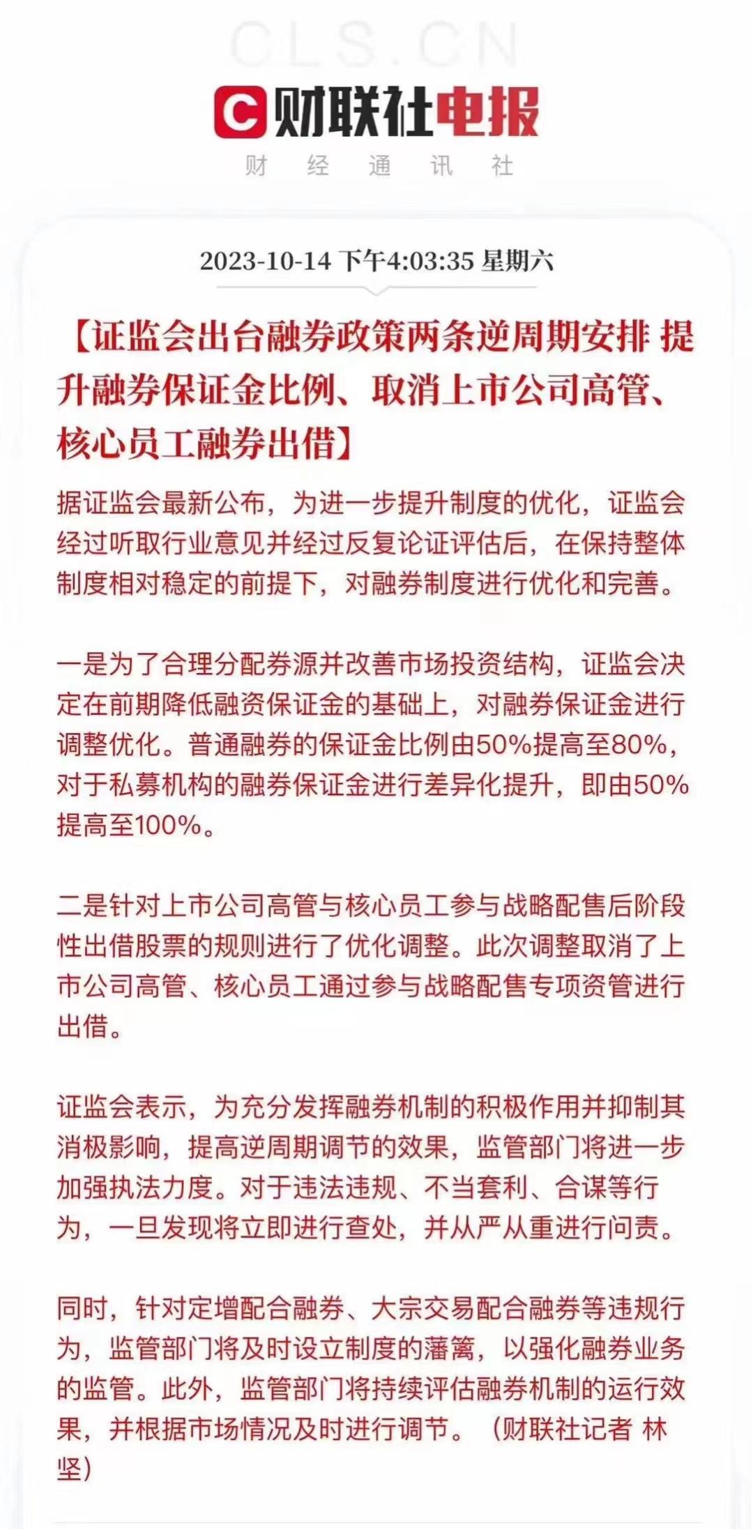 不过信息量最大的还是“对于违法违规、不当套利、合谋等行为,一旦发现将立即进行查处,并从严从重进行问责”这句,至于“监管部门将持续评估融券机制的运行效果,并根据市场情况及时进行调节”,对券商和私募就更是暴击了。