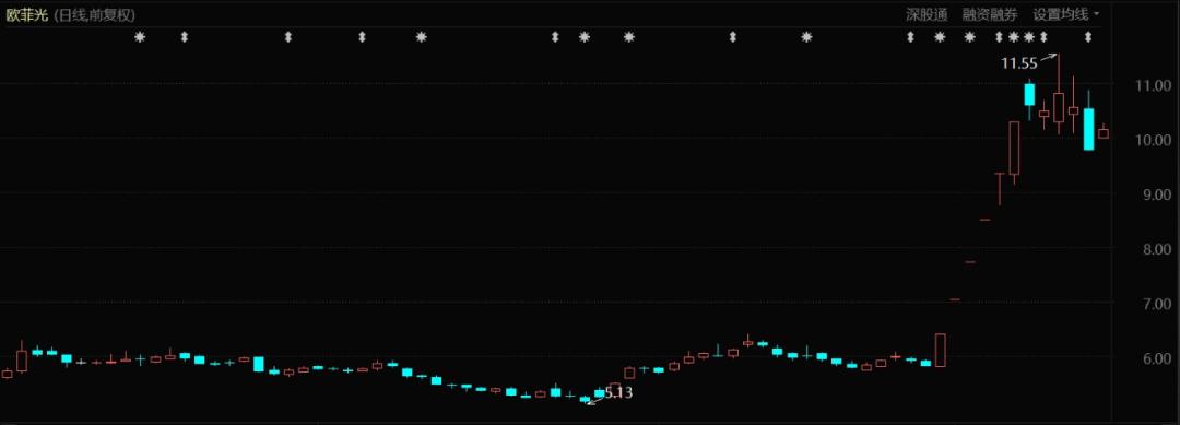 欧菲光股价表现(2023年7月至今)