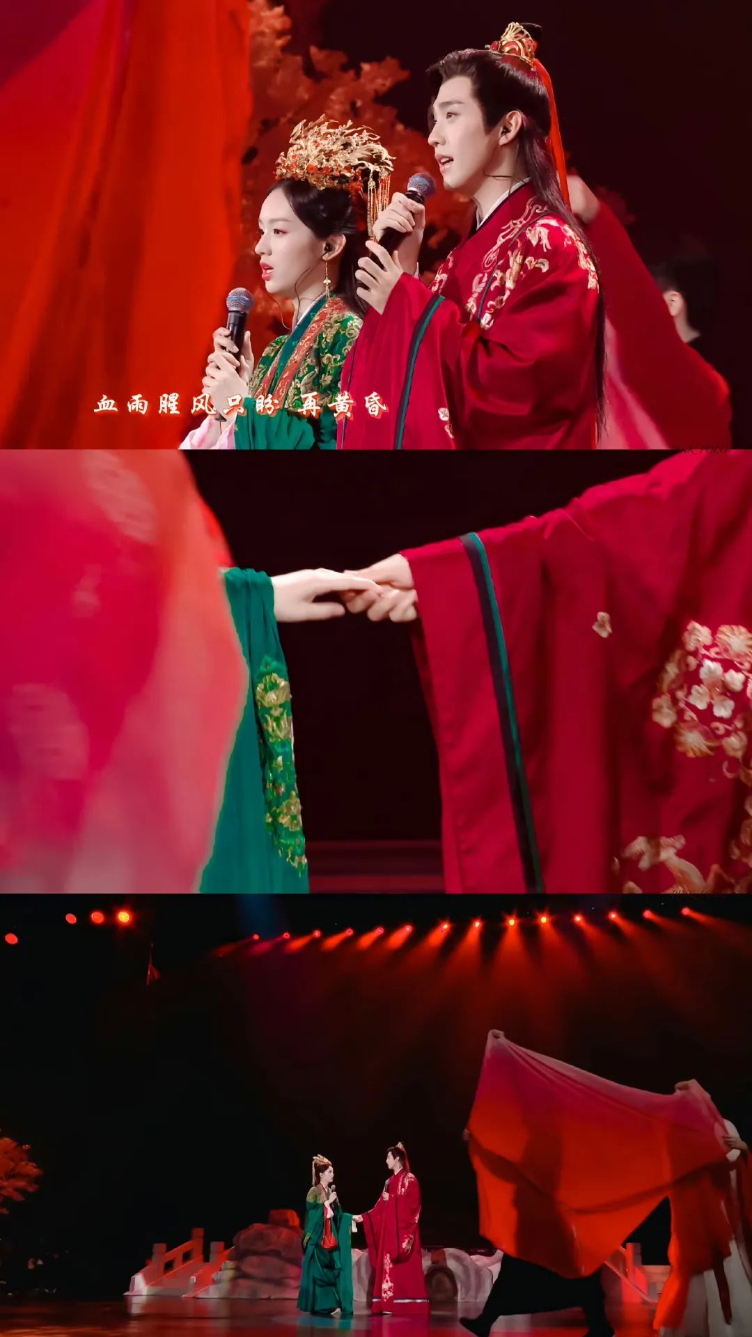 过程中,《山河令》演员随着剧情重现更改服装(如蓝衣到红衣、劲装到婚服等),对应着剧中情结的起承转合。场景还原也更旨在弥补剧中的“意难平”,主演从称呼到行为表现,都尽可能地贴合角色逻辑。本以悲剧收尾的“湘宁大婚”也圆满,让周也和马闻远携手合唱,更给了观众情感的出口。