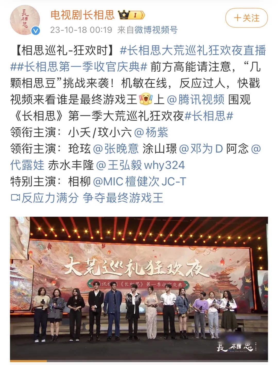 大结局两个月之后,《长相思》在10月17日办了一场“收官庆典大荒巡礼狂欢夜”。当晚热搜被《长相思》刷屏,但登顶时间最长的词条却是#长相思晚会 尴尬#。