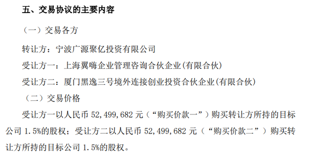 10月17日,良品铺子公告称,其全资子公司广源聚亿拟将所持宜春赵一鸣食品科技有限公司(以下简称“赵一鸣零食”)3%的股权,以总计约1.05亿元的价格,转让给上海翼嗨企业管理咨询合伙企业(有限合伙)、厦门黑逸三号境外连接创业投资合伙企业(有限合伙),交易完成后广源聚亿不再持有赵一鸣零食的股权。