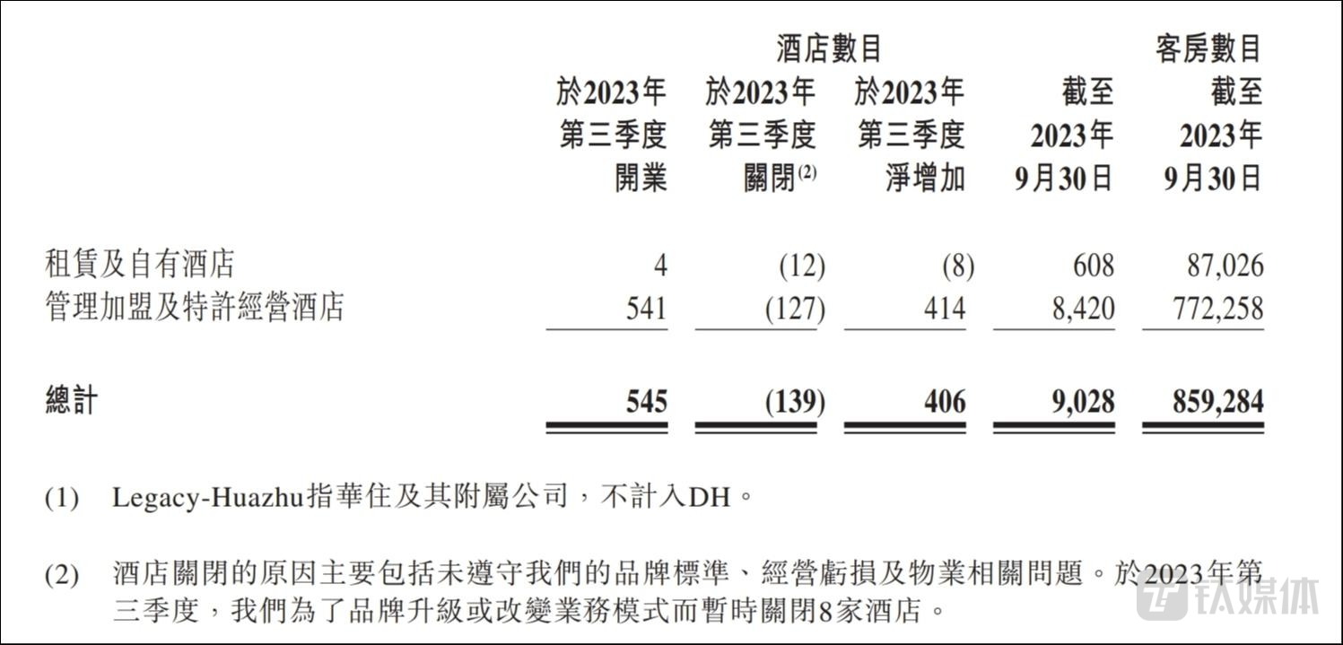 虽然平均可出租客房收入的增长继续主要由日均房价增长所带动,本季度入住率的恢复情况亦较上季有所改善。于2023年第三季度,公司加快开设酒店,新开业酒店总数达545家,而关闭的酒店数目为139家。