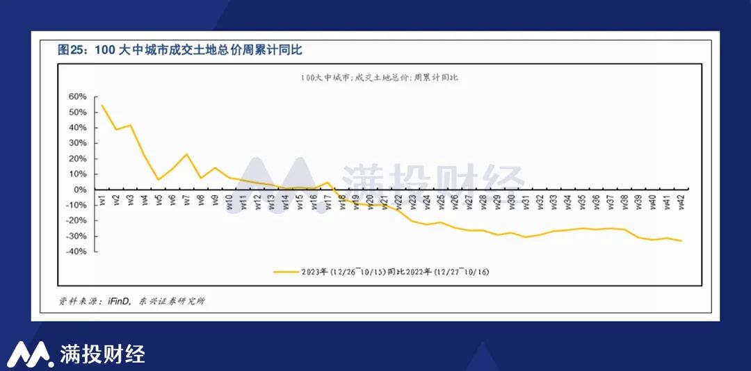以库存周期的角度来解释房地产交易的话,就是各大地产商正在加速库存消耗,但并没有积极地补充土地储备,这说明房企依旧处于主动加速去库存的阶段。若后续房企拿地意愿依旧维持低迷,在强开工+强竣工的存货消耗下,后续地产投资将面临一定的压力。