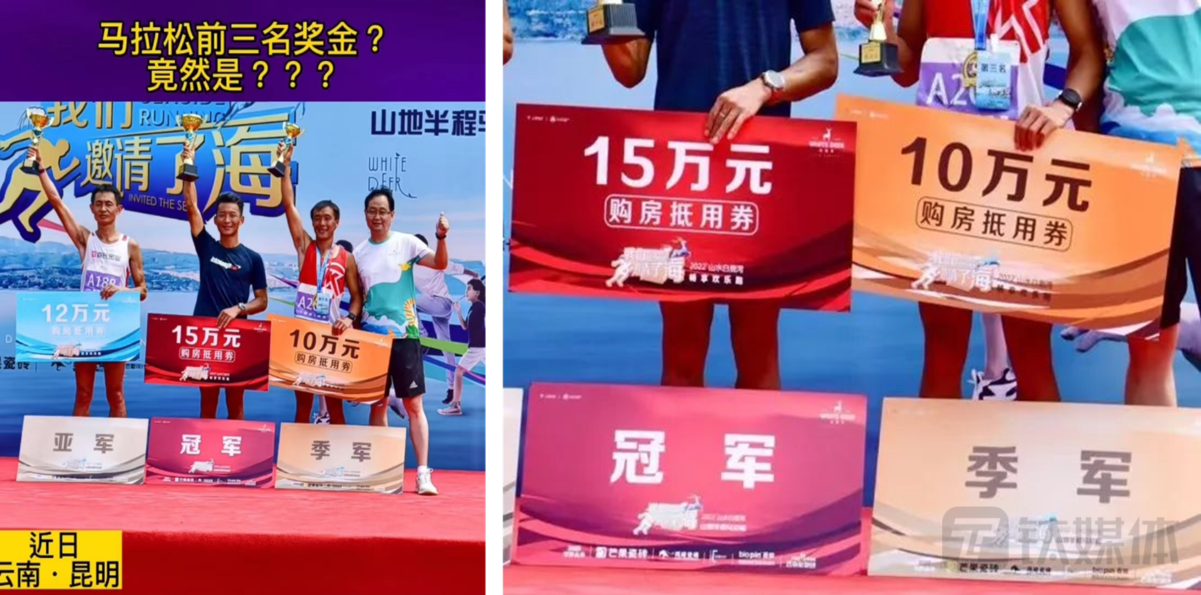 房企在花式促销方面的点子总是层出不穷。近日,“马拉松前三奖励10-15万房票”火出圈,这其实是去年8月在昆明举办的山水白鹭湾山地半程马拉松,因为奖金是冠军奖励15万,亚军12万,季军10万的购房抵用券,受到网友的吐槽“奖了,又好像没完全奖”。