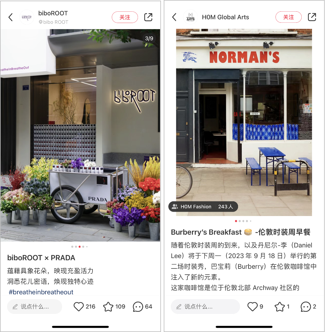 不仅是LV,Burberry和Prada也于近期在全球范围内深入到城市街区办活动,不让品牌文化和产品理念悬浮在文字图片和音像作品中,将「街区」作为输出和落地的重要一环,让消费者能具象地看到、摸到、感知到品牌传递的内容。