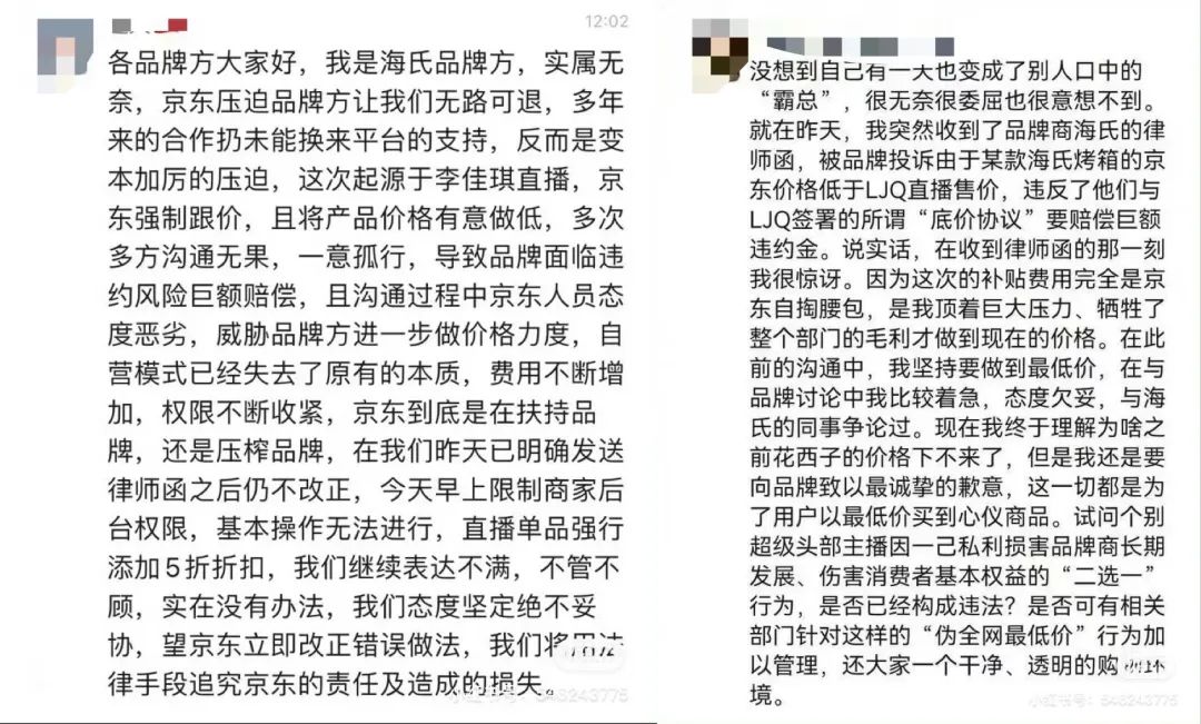 就拿昨天被卷入话题风暴的海氏来说,品牌方也发了一则声明称京东擅自单方面调低产品价格,调低价格后每一台销售额的损失均由品牌方承担。
