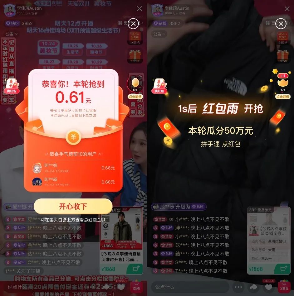 实际上抖音、快手、京东等平台早在前几日就陆续开始了双十一活动,不过对于许多网友来说,淘宝预售的开启才算真正拉开了双十一大战的帷幕,尤其是每年李佳琦直播间的锣鼓声,仿佛已经成为双十一的既定仪式感。